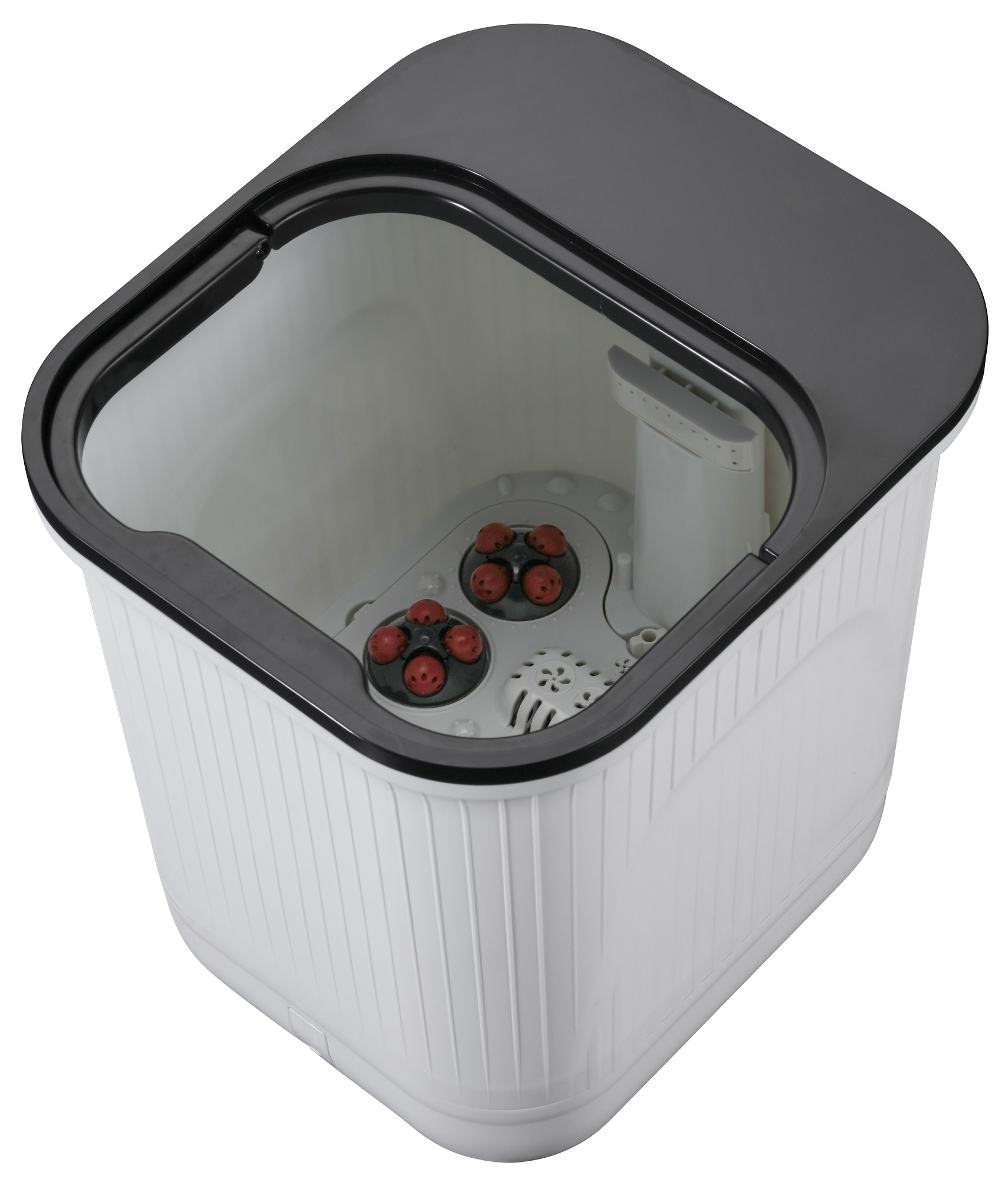 Acest aparat de masaj este echipat cu role de masaj puternice pentru a îmbunătăți circulația sângelui. De asemenea, aparatul de masaj are o funcție de masaj cu bule și încălzirea apei cu infraroșu, oferind căldură și senzații cunoscute din vizitele la un salon SPA.