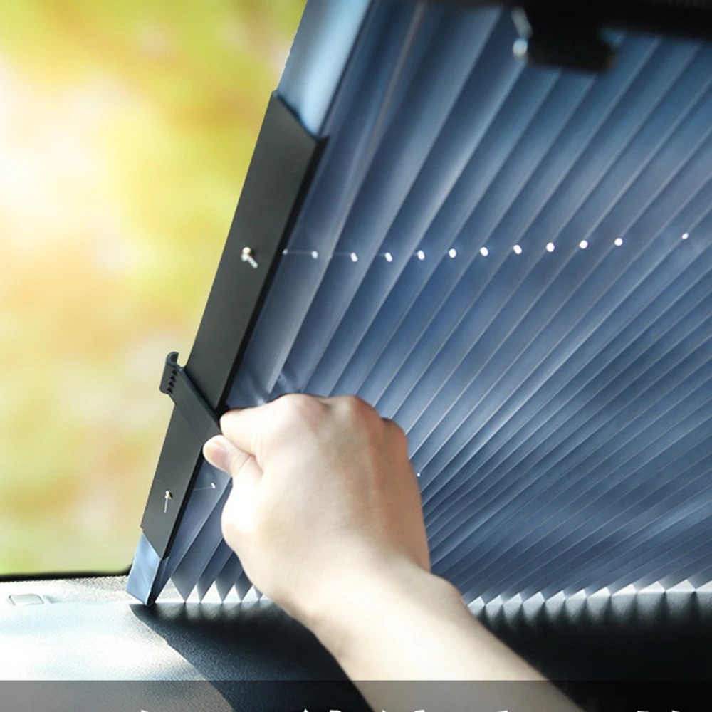 Stiati ca temperatura din interiorul unei masini care sta la soare poate ajunge pana la 55 de grade C? Protejeaza-ti bordul si volanul masinii de razele UV si de caldura verii cu acest parasolar auto retractabil tip jaluzea. Acesta este recomandat mai ales familiilor cu copii mici sau animale de companie, deoarece acestia nu trebuie sa intre intr-o masina infierbantata. Scapa de caldura excesiva a masinii dupa o zi lunga de vara. Acest parasolar impiedica incalzirea excesiva a interiorului masinii tale. Nu va mai fi necesara ventilarea indelungata sau setarea aerului conditionat pe o treapta ridicata. Parasolarul poate fi montat cu usurinta pe interiorul parbrizului sau pe luneta spate cu ajutorul ventuzelor.