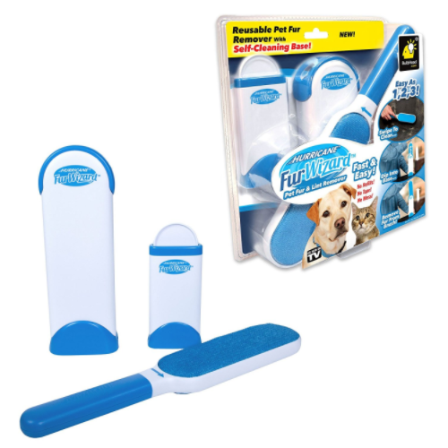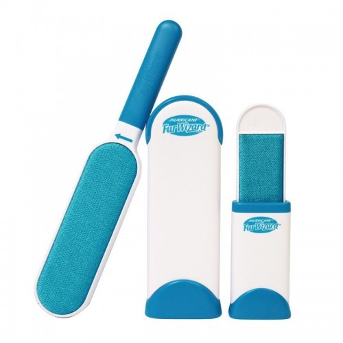 Perie pentru scame si indepartarea parului de animale Fur Wizard, usor de manevrat, complet reutilizabila, ce dispune de doua micro-perii pentru o viteza de colectare de doua ori mai mare, si o baza de auto-curatare ce are si rolul de colectare a scamelor si parului de animale.