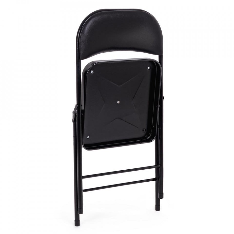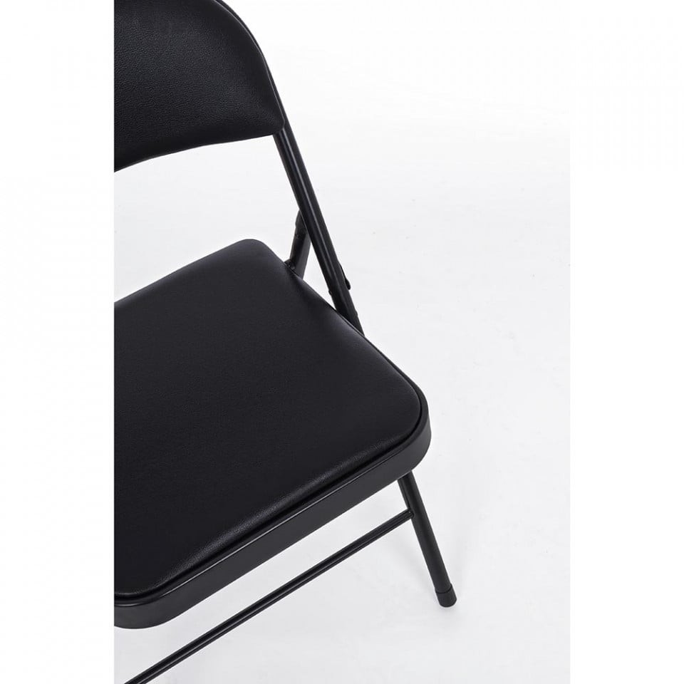 Scaunul pliabil are picioare din otel cu diametrul de 22 mm, cu invelis din pulbere de poliester si tapiteria din piele ecologica.