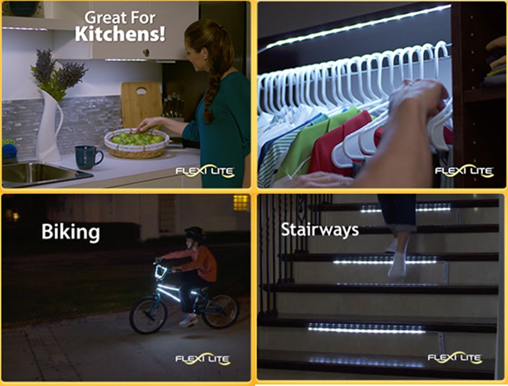 Setul de 2 benzi Flexi Lites se instaleaza cu usurinta acolo unde aveti nevoie: garaj, debara, bucatarie, dulap, portbagaj etc.