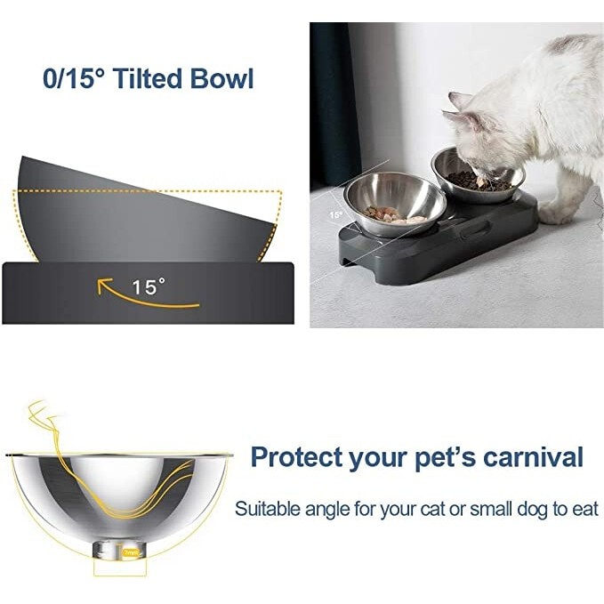 Bolurile inaltate pot ajuta la imbunatatirea digestiei pisicii, iar inclinarea de la 0 la 15° reduce tensiunea corpului in timpul hranirii.