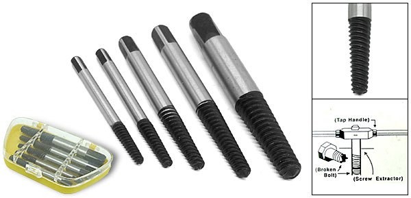 Setul 5 piese extractoare suruburi uzate, rupte este fabricat din oțel HSS 4241, fiind ideal pentru indepartarea suruburilor, holdsuruburilor uzate, cu cap drept, cruce, stea, philips, hexagonal, torx, patrat etc.