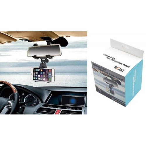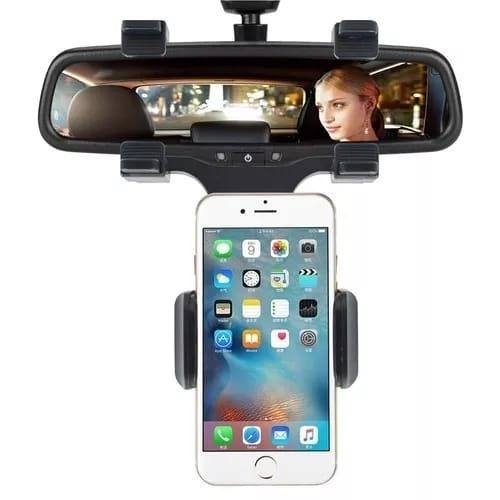 Suport auto universal pentru smartphone cu prindere pe oglinda retrovizoare. Nu afecteaza campul vizual, este ideal pentru autoturismele la care parprizul este prea departe pentru a fixa tefefonul cu un suport de parbriz.