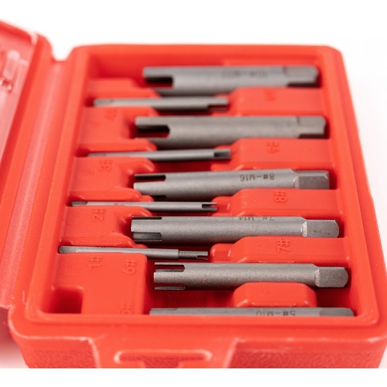 Trusa extractoare de suruburi pentru robinete, cu cele 10 piese incluse, reprezinta solutia completa pentru extragerea si inlocuirea eficienta a suruburilor de robinete. Indiferent daca sunteti un instalator profesionist, un pasionat de bricolaj sau pur si simplu aveti nevoie sa realizati reparatii sau inlocuiri la robinetele dvs., aceasta trusa va va oferi instrumentele necesare pentru a va aborda proiectele cu succes.Gama completa de dimensiuni: Trusa extractoare de suruburi pentru robinete include o gama larga de dimensiuni, de la M4 pana la M20, acoperind astfel majoritatea dimensiunilor de suruburi intalnite la robinete. Indiferent daca aveti de-a face cu suruburi mai mici sau mai mari, aceasta trusa va asigura ca veti avea instrumentul potrivit la indemana pentru a efectua extragerea sau inlocuirea cu succes.Calitate si durabilitate superioara: Fiecare extractor de suruburi din trusa este fabricat din materiale de inalta calitate, asigurandu-va rezistenta si durabilitate remarcabile. Indiferent de conditiile de lucru sau forta aplicata, aceste extractoare sunt concepute sa reziste si sa faca fata cerintelor de utilizare frecventa.Utilizare usoara si eficienta: Extractoarele de suruburi din trusa pentru robinete sunt concepute pentru a fi utilizate in mod simplu si eficient. Cu ajutorul acestora, veti putea extrage suruburile stricate sau corodate cu usurinta si fara a deteriora robinetele sau alte componente. Designul ergonomic si mecanismele de prindere asigura o fixare sigura si o extragere eficienta a suruburilor.Versatilitate in aplicatii: Aceasta trusa de extractoare de suruburi este potrivita pentru o gama larga de aplicatii, inclusiv extragerea suruburilor de la robinete de apa, robinete de gaz, robinete de incalzire si multe altele. Indiferent de tipul de robinet cu care aveti de-a face, veti avea instrumentele necesare pentru a realiza cu succes lucrarile de intretinere si reparatii.Compact si usor de transportat: Trusa extractoarelor de suruburi pentru robinete vine intr-un ambalaj compact si practic, care va permite sa pastrati si sa transportati piesele in conditii sigure si organizate. Indiferent daca aveti nevoie sa utilizati trusa acasa, la birou sau in deplasari, aceasta va va fi usor de transportat si veti avea acces rapid la instrumentele de care aveti nevoie.Concluzie: Trusa extractoarelor de suruburi pentru robinete, cu cele 10 piese incluse, este solutia completa pentru extragerea si inlocuirea eficienta a suruburilor de la robinete. Cu gama sa completa de dimensiuni, calitatea si durabilitatea superioara, utilizarea usoara si eficienta, versatilitatea in aplicatii si portabilitatea compacta, aceasta trusa va va ajuta sa realizati cu succes proiectele de intretinere si reparatii la robinete.Trusa contine:10buc. extractoare #1-10 pentru M4, M5, M6, M8, M10, M12, M14, M16, M18, M22